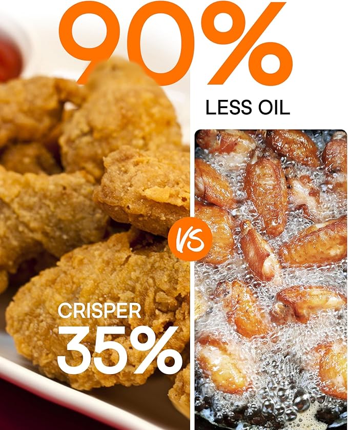 - POWERFUL CONVECTION FAN & SMOKELESS – Brio is an air fryer oven with a powerful 5-inch convection fan. It’s top mounted and promotes unrivaled cyclonic convection circulation for fast, even, extra-crispy cooking while remaining smokeless, saving you precious time in the kitchen.